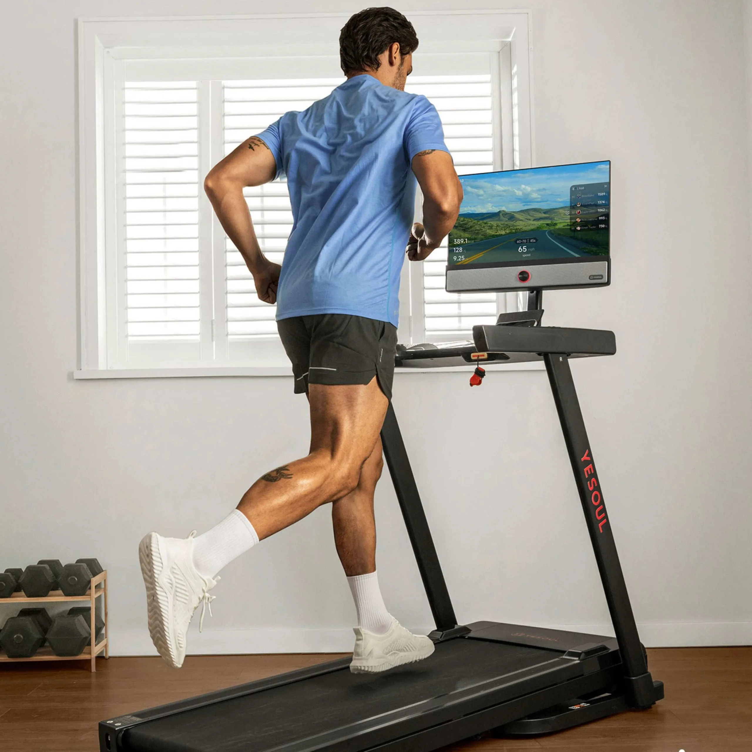 Koge kodus professionaalset treeningut suure 21,5” pööratava täis-HD ekraani ja võimsate kõlaritega. Vaata treeningtunde, jälgi tulemusi ja kuula muusikat – kõik ühes seadmes. Hüdrauliline kokkupanek teeb hoiustamise lihtsaks ja ruumisäästlikuks. Harjasteta mootor, millega treenid kuni 16 km/h kiirusega. Manuaalselt reguleeritav kallak ning ühilduvus Yesoul Fitness, Zwift ja Kinomap rakendustega teevad treeningu mitmekesiseks ja motiveerivaks.